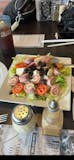 Shrimp, clams & scallops in a white wine scampi sauce or marinara sauce.